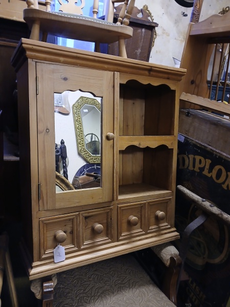 A pretty modern pine with two drawers and a mirrored cupboard – ideal for a bathroom